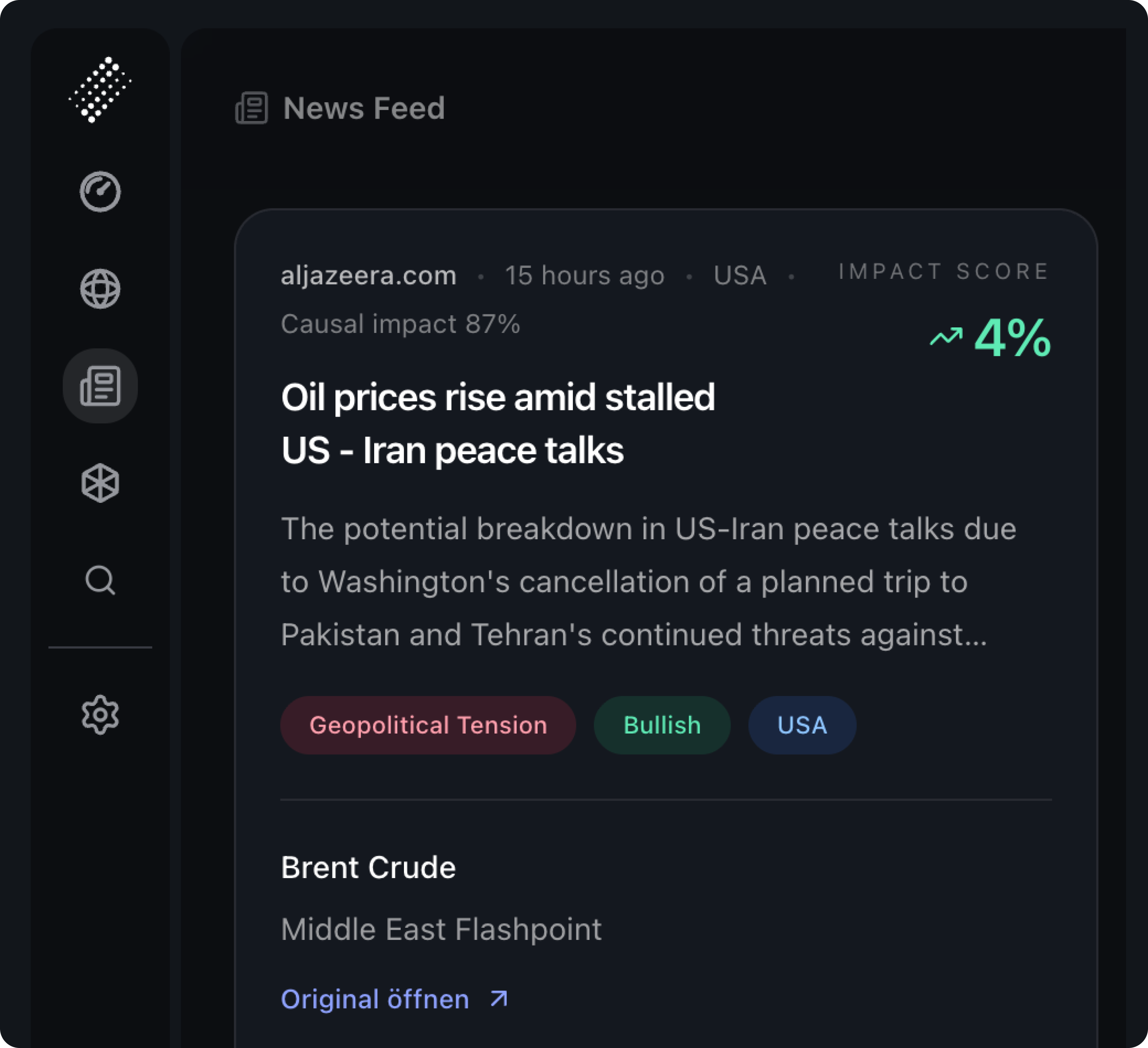 Connect cause to effect — Link event clusters directly to price movements, enabling you to trace how specific developments influenced the market — and which signals truly mattered.